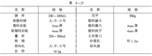 (1)環(huán)氧樹脂類膠料、膠泥和砂漿的配合比環(huán)氧樹脂類材料在不同的使用范圍,針對不同的使用對象,采用的構造具有很大的區(qū)別,各個構造層的配合比例見表6-28。