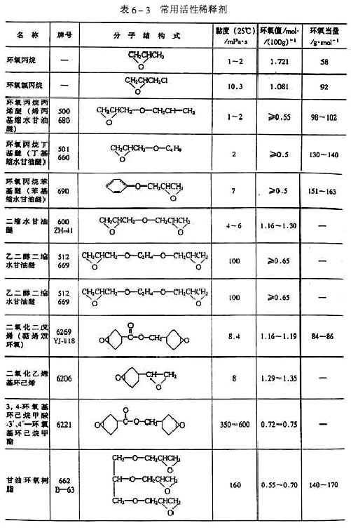 ![]() (2)活性稀釋劑的種類及使用。活性稀釋劑具有環(huán)氧基,能參與環(huán)氧樹脂的環(huán)氧固化反應(yīng),所以并無逸出之弊。
