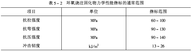(2)力學(xué)特性檢測(cè)澆注件力學(xué)性能的項(xiàng)目主要有抗張、抗彎、沖擊及抗壓強(qiáng)度,彈性模量、撓度等。作為電器絕緣的環(huán)氧澆注零件,其主要的力學(xué)性能指標(biāo)范圍見表5-2。但這些都是在實(shí)驗(yàn)室通過儀器檢測(cè)出來的,在澆注件的實(shí)際工作中,評(píng)價(jià)和分析零件的蠕變強(qiáng)度和耐龜裂性更加必要。