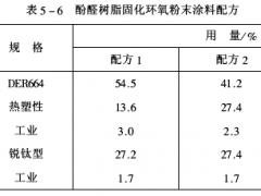 介紹環(huán)氧粉末涂料制備方法.1.配方組成 酚醛樹脂固化環(huán)氧粉末涂料配方見表5-6.2.生產(chǎn)工藝 粉末涂料的制造方法有干混法.環(huán)氧粉末涂料采用熔融擠出混合法生產(chǎn).具體操作工序?yàn)樵牧项A(yù)...
