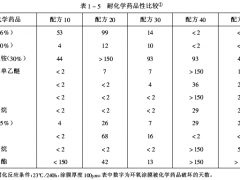 采用五種環(huán)氧樹脂分別為:配方10雙配A型環(huán)氧樹脂.配方50由雙酚A型環(huán)氧樹脂:對氨基酚環(huán)氧樹脂=50:50.試驗結(jié)果見表1-5.值得注意的是.水蒸氣和鹽水對環(huán)氧涂膜滲透率及涂膜耐水性的研究...