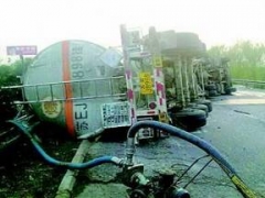 ECH罐車側(cè)翻,濟多個路口封閉(圖)
